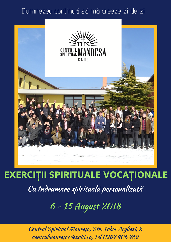 Iezuiții din Cluj-Napoca organizează în perioada 06-15 august 2018, la Centrul spiritual Manresa, exerciții spirituale personalizate, adresate persoanelor cu vârsta între 18 şi 40 de ani.