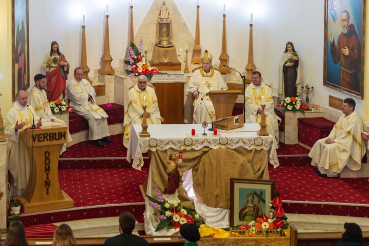 După incenzarea statuii, s-a format procesiunea spre Altarul Domnului, unde s-a continuat Sfânta Liturghie de mulțumire lui Dumnezeu pentru toate darurile primite de la El, prin mijlocirea Sfintei Elena, patrona comunității noastre.